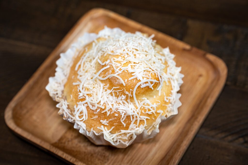 a soft, buttery Filipino sweet bun, packed with caramel filling then coiled and topped with caramel and coconut shavings— light, fluffy, and indulgently flavorful, perfect for snacks, breakfast, or celebrations