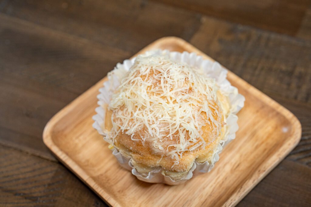 a soft, buttery Filipino sweet bun, coiled and topped with a butter and cheese— light, fluffy, and indulgently flavorful, perfect for snacks, breakfast, or celebrations.